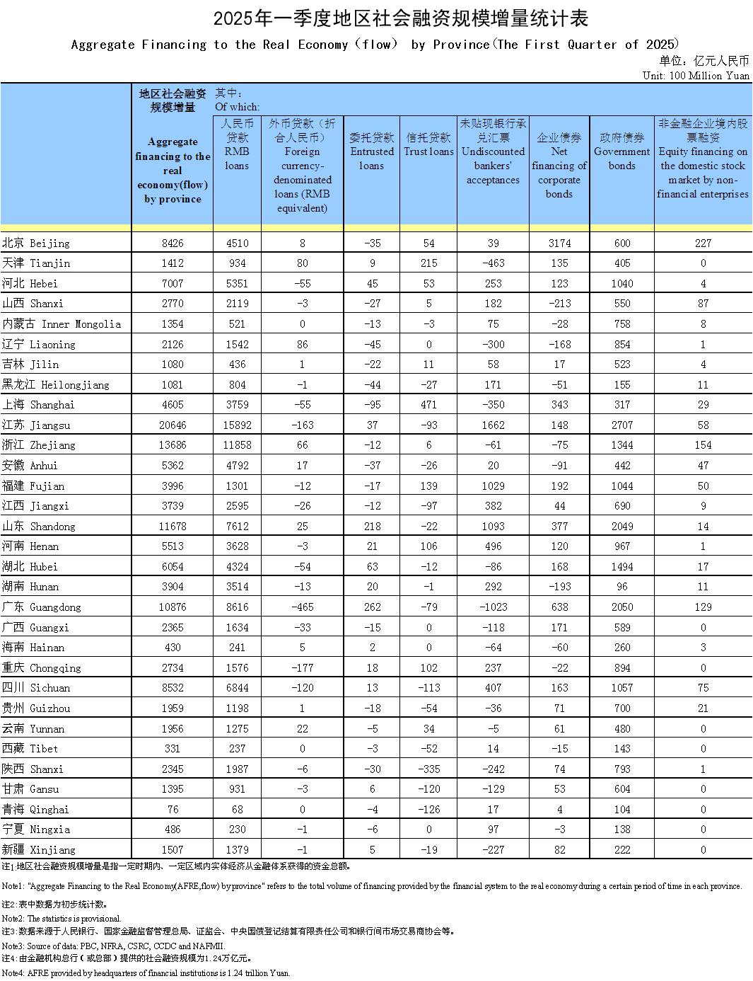 2025年一季度地区社会融资规模增量统计表.xlsx